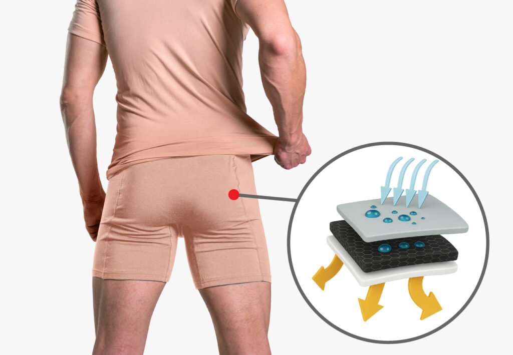 Pánské trenýrky Gobi představují 100% ochranu proti propocení v zadní části. Díky nepropustnému integrovanému dílu zůstanou vaše kalhoty perfektní během celého dne. Trenýrky Gobi fungují jako spolehlivá bariéra i při nadměrném pocení a vždy zachovají vrchní vrstvu oblečení bez jakýchkoli známek potu.